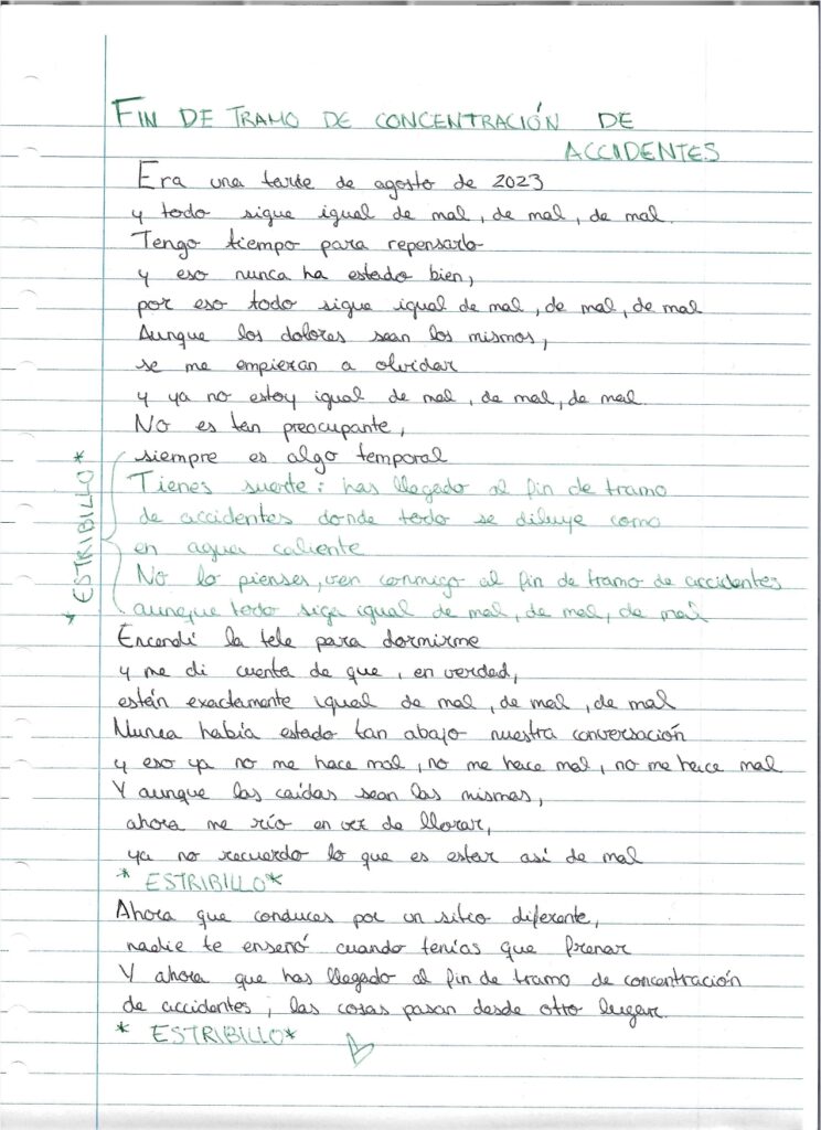 El tema habla de dejar atrás los golpes del pasado, de entenderlos, asumirlos y, finalmente, seguir avanzando. Como cuando pasas esa señal en la carretera que indica que lo peor ya ha quedado atrás. Un punto de inflexión que marca el inicio de una nueva etapa, con otra mirada y otra forma de vivir las cosas.