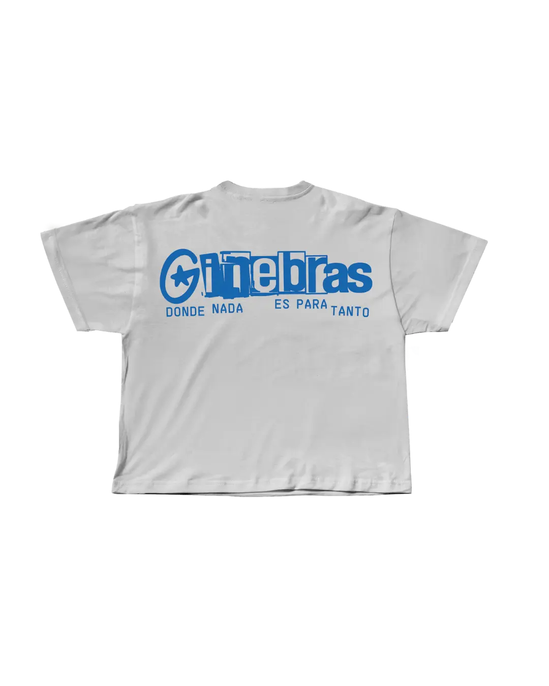 El icónico símbolo de Ginebras en azul eléctrico, estampado con efecto spray en la parte delantera y el logo del grupo con el título del nuevo disco en la parte trasera. Un diseño para la camiseta blanca modelo Baby the