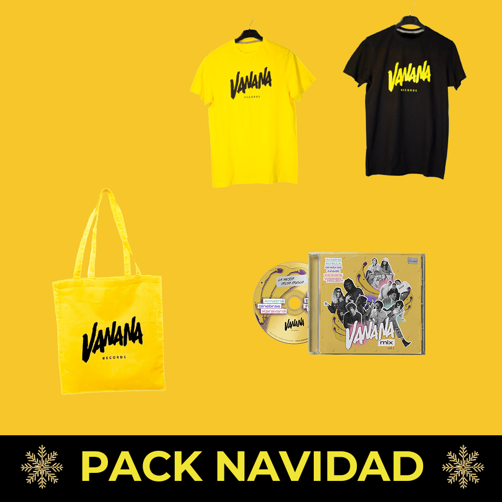 PACK NAVIDAD: MIX VANANA20,00€ PACK EXCLUSIVO NAVIDAD – VANANA RECORDS Incluye: Tote de Vanana Records + CD Vanana Mix + Camiseta Vanana Records (Amarilla o Negra) Tote bag Vanana Tote Bag Vanana Color Amarilla, Asa larga *Los envíos tardan 4/5 días en llegar 15 disponibles CD Vanana Mix CD Vanana Mix Recopilatorio de los artistas de Vanana Records donde se mezclan entre ellos para hacer versiones o remixes de los temas de otros 1. Ginebras - Una voz (original de Amatria) 2. Karavana - Hola Qué tal? (original de ELYELLA y Jero Romero) 3. WISEMEN PROJECT - Tonight (Club version) 4. Ginebras - Cosas Moradas (INNMIR remix) 5. Karavana - Pienso (Amatria remix) 6. Ginebras - La Típica Canción (ELYELLA remix) 7. ELYELLA - Dreamers (WISEMEN PROJECT remix) 8. Amatria, ELYELLA, Ginebras, INNMIR, Karavana, Wisemen Project - Vanana Megamix *Los envíos tardan 4/5 días en llegar Camiseta Vanana Records negra Camiseta básica unisex de manga corta Composición: 100% algodón, 150 gr/mq Color: Negra letras amarillas Talla * Elige una opciónSMLXLXXLLimpiar Camiseta Vanana Records negra cantidad Camiseta Vanana Records amarilla Camiseta de manga corta, cuello redondo de 4 capas y cubre costuras reforzado en cuello y hombros. Composición: 100% algodón, 180 g/m². Color: Amarilla Talla * Elige una opciónSMLXLXXLLimpiar Camiseta Vanana Records amarilla cantidad 15 disponibles PACK NAVIDAD: MIX VANANA cantidad Añadir al carrito Categorías: Discos, Merchandising, Packs Navideños Información adicional Camiseta Vanana Records negra Talla S, M, L, XL, XXL Camiseta Vanana Records amarilla Talla S, M, L, XL, XXL Productos relacionados Vinilo GINEBRAS – Ya Dormiré Cuando Me Muera (LP, Edición negro) 16,00€ Leer más CD Amatria – ALGARABÍA (2017) 13,00€ Añadir al carrito CD ANABEL LEE – Ganamos Perdiendo 14,50€ Añadir al carrito CD Vanana Mix 10,00€ Añadir al carrito